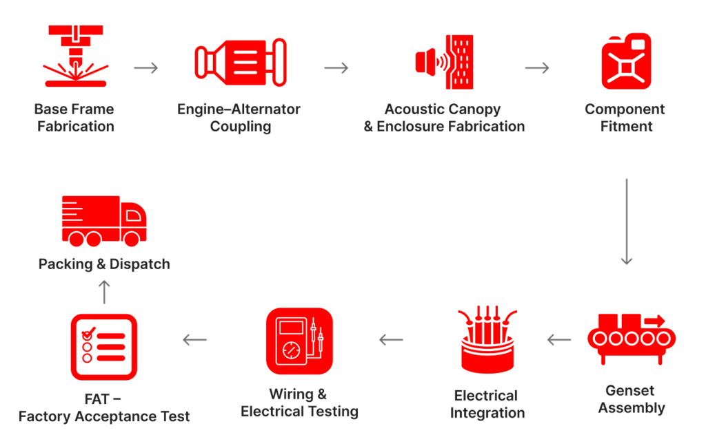 From engine-alternator coupling to acoustic canopy assembly and emission verification, our facilities deliver CPCB IV+